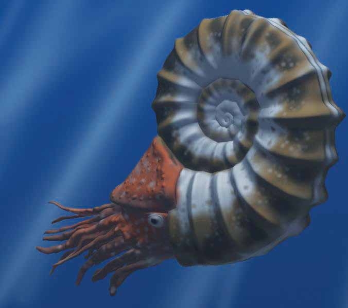The extinction of species was repeated, but never again on the scale of this first event. About 60 million years ago there was another abrupt alteration of conditions on the planet, which led to the extinction of the last dinosaurs. This was also accompanied by climate change, which sped up the process of replacement of some animals and plants by other new species. Other groups of living beings, such as ammonites (sea molluscs similar in shape to rams’ horns) and belemnites (whose fossils resemble arrowheads), followed the dinosaurs out of existence. Almost half of all sea creatures disappeared at that time, and how many disappeared on land is not precisely known, because the remains of land organisms are much less well preserved.