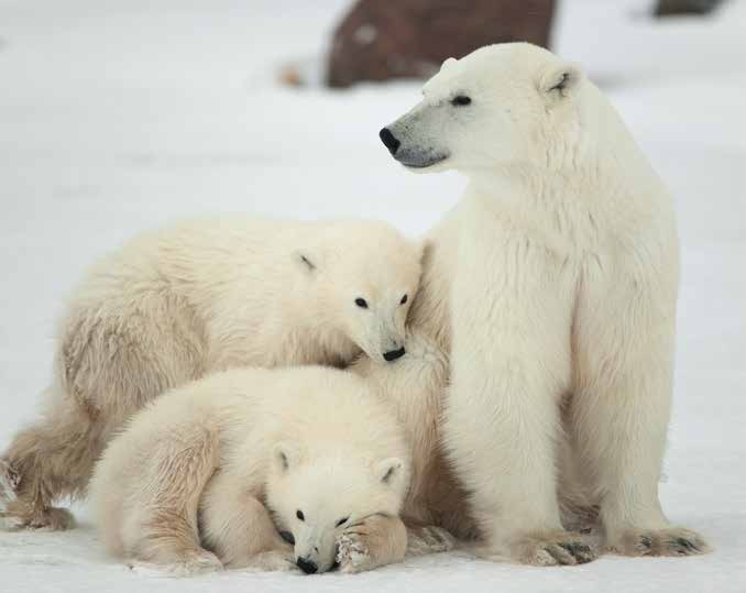 The shrinking northern polar ice cap is the most visible sign of climate warming. Polar bears need ice for their migration and to hunt for seals, and the ice is also vitally necessary for the seals themselves, as without it they have nowhere to rear their young. If ice fields start to shrink more than is usual each summer, the seal population also shrinks and hungry polar bears eat the whole carcasses of the seals they catch, instead of devouring only the seal’s layer of fat. Previously the remains of a polar bear’s meal provided a feast for other inhabitants of the Arctic – the Arctic fox and numerous birds. But now there is nothing left over for them!
