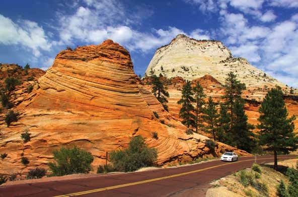 The Zion National Park in Utah in the USA is a fine example of how to achieve environmental safety. About 20 buses, using low-emission gas fuel, carry visitors around the park, replacing about 5,000 cars that visitors would otherwise bring with them. The result has been a significant reduction in greenhouse gas emissions. A ‘Green Centre’ built at the park to welcome tourists obtains nearly a third of its energy needs from the sun, with 80% of its lighting needs provided by natural light. In the summer the air conditioning system uses special energy-efficient evaporators. In the winter a passive heating system, which uses a wall of heat-absorbing materials (stone, brick) facing the sun, maximizes heat retention.