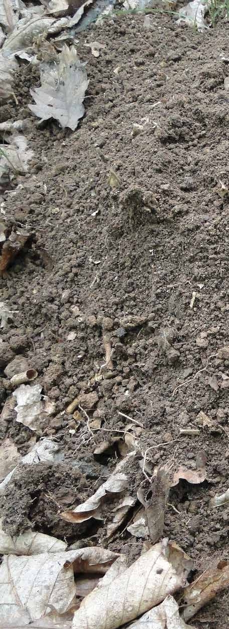 Soil pool in the forest contains significant amounts of carbon. The soil is a mixture of minerals and of organic matter, mainly ‘humus’, which is a dark-coloured substance created by the gradual break-down of plant residues (litterfall, dead wood and dead roots). Carbon accounts for 58% of the make-up of humus, which is a higher share than in phytomass. The darker the soil, the more carbon it contains (Fig. 2.3.14).