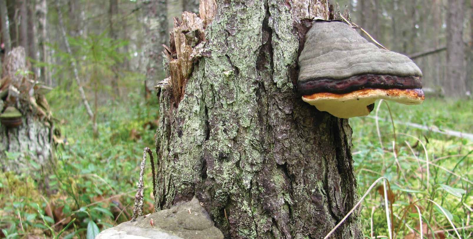 In taiga and temperate forests, a large part of the plant life dies naturally (when a plant withers and dies or when it drops its leaves and twigs) and is then consumed by fungi and bacteria (Fig. 2.3.16). This replenishes the dead wood and litterfall carbon pools.