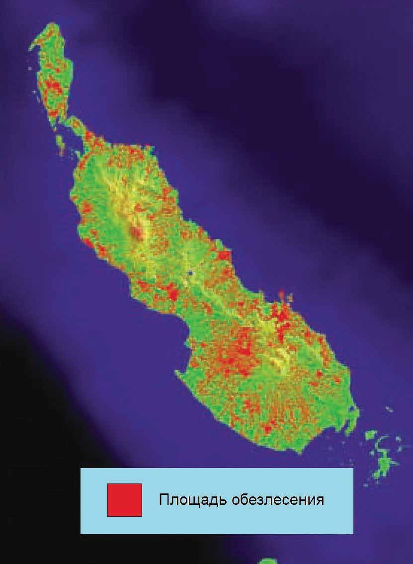 Figure 2.3.18 Loss of forest cover on the island of Bougainville (Papua New Guinea), 1972-2002