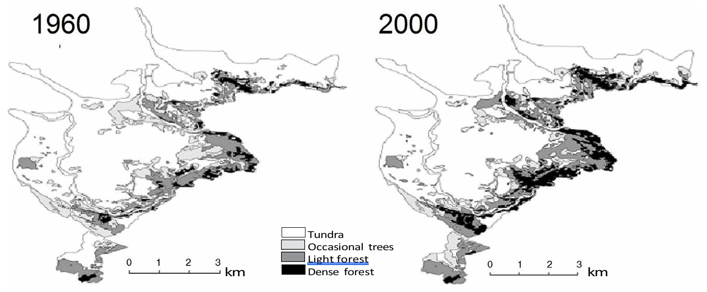 Figure 2.3.5 Change of vegetation cover in the Polar Urals (Russia)