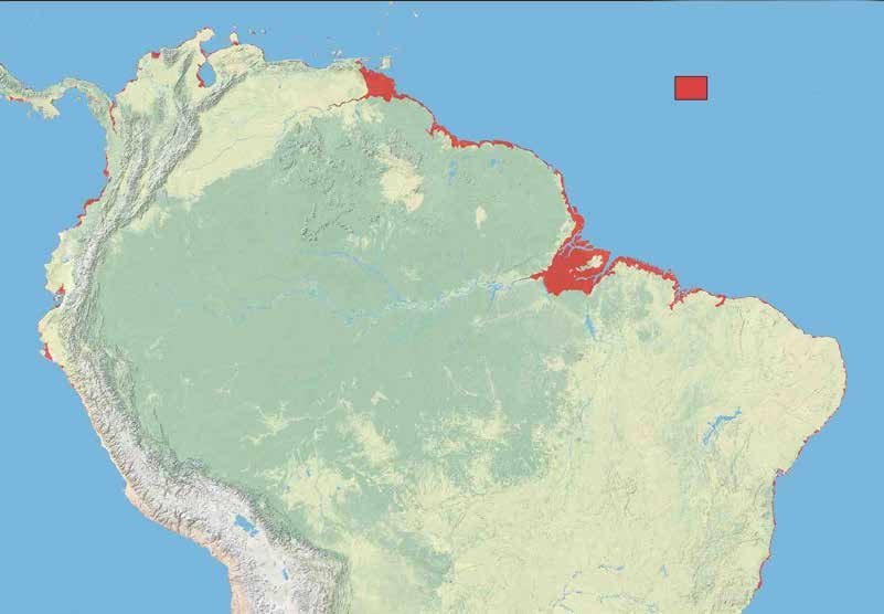 Show on a contour map how the appearance of the continent of South America would change if sea levels rose by 100m.