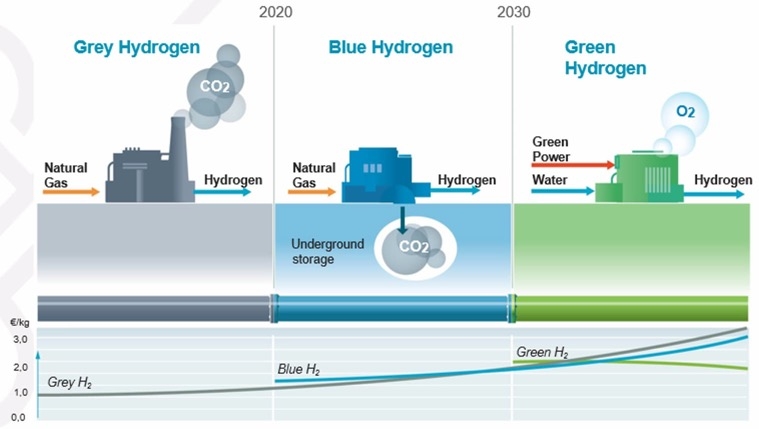 Figure 3.1.3 Types of hydrogen, how they are produced and starting year of production