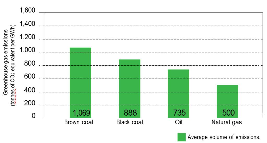 Figure 3.1.6 Emission of greenhouse gases from the use of various hydrocarbon sources of energy