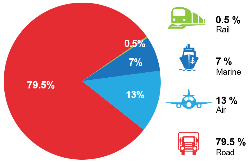 Figure 3.2.6 Breakdown of GHG emissions by different modes of transport
