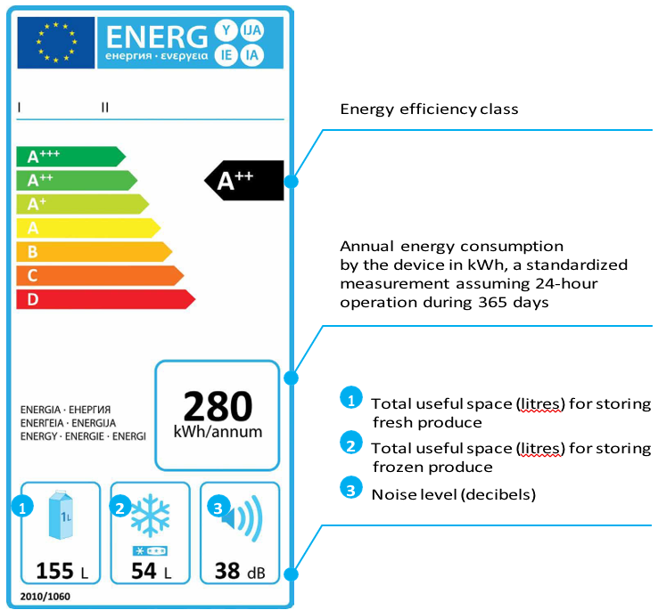 The label is intended to let consumers compare the energy efficiency and some other features of similar products made by one or several manufacturers. The most energy-efficient products are those in energy efficiency classes ‘A’ or ‘A +’, ‘A++’ and ‘A+++’.