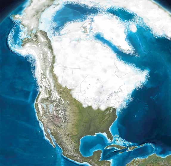 Figure 1.3.7 North America during: A - the glacial period 125,000 years ago B - at present