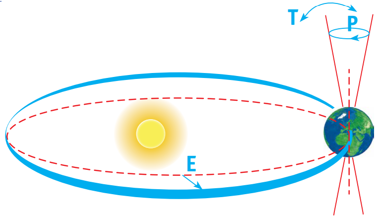 Figure 1.3.6 Changes in the Earth’s orbit and its rotation around its own axis, which determine the onset of glacial periods