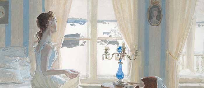 Figure 1.4.8 Tatiana sitting on the bed. Winter Illustration from Eugene Onegin by D. Belyukin (Russia, 1999)