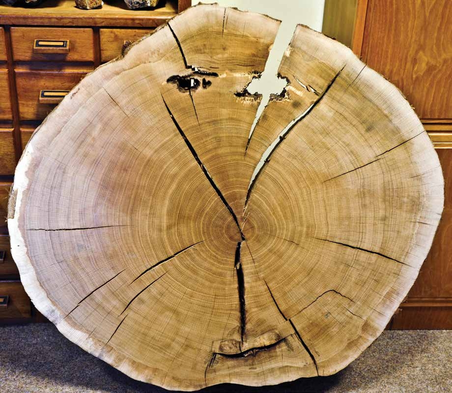 The oldest growth rings are at the centre of the log or stump and the youngest are at the edge.