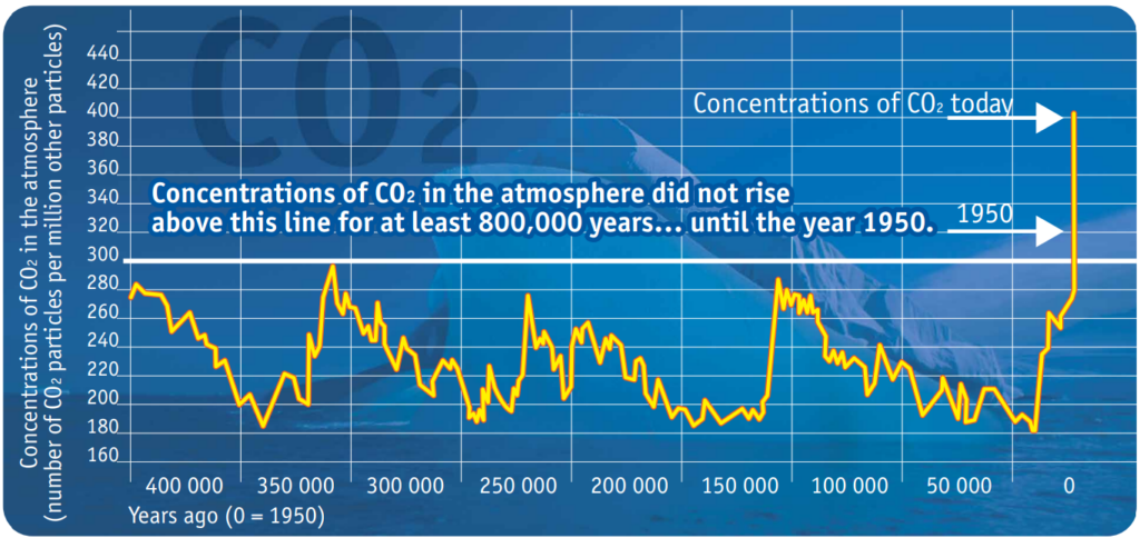 Figure 1.4.3 Concentrations of CO2 in the atmosphere over the past 400,000 years