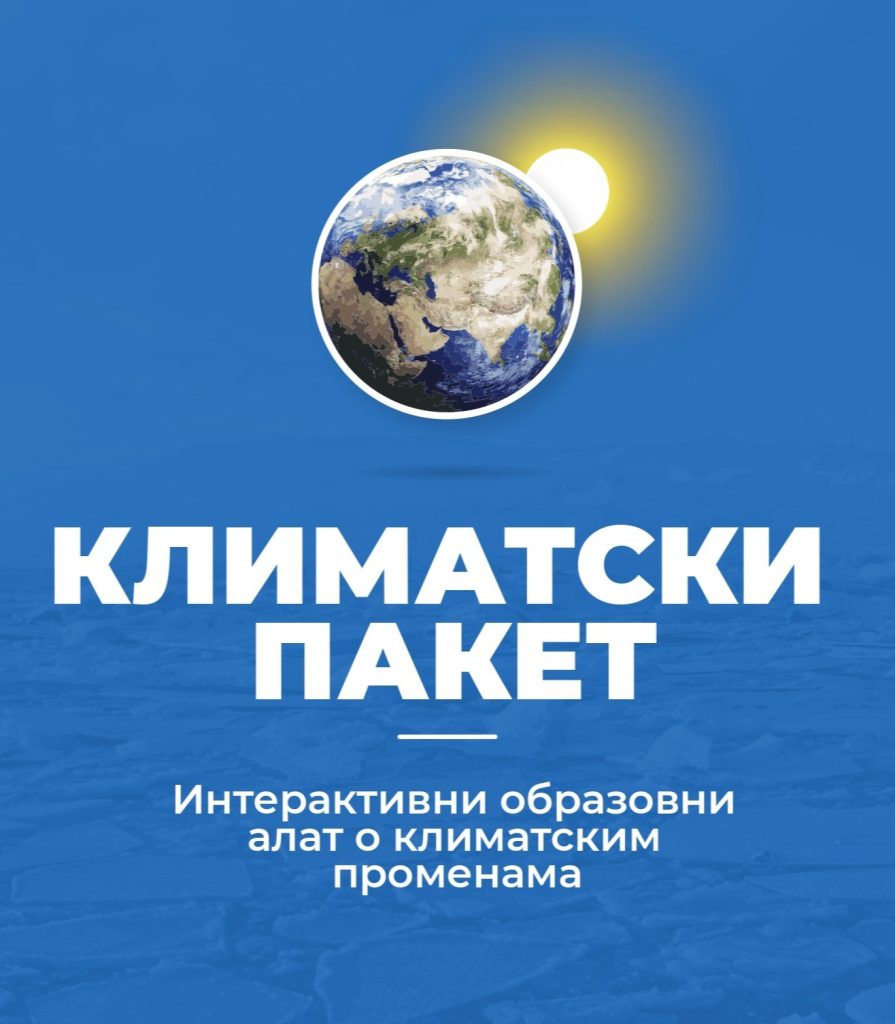 Климатски пакет је иновативан, интерактиван комплет алата за учење и образовни програм усмерен на подизање свести о климатским променама међу школском децом. Развијен од стране УНДП-а, циљ му је да едукује и инспирише на деловање. У својој суштини Климатски пакет нуди свеобухватан комплет алата осмишљен да учење о климатским променама учини занимљивијим. Садржи ажуриране информације комбиноване са креативним задацима, играма, квизовима, експериментима и ресурсима за наставнике и едукаторе.