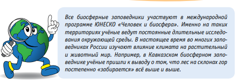 В местах, где природа испытывает незначительное влияние человека, создают биосферные заповедники. Как правило, в них охраняют типичные для данной местности экосистемы, а также редкие виды и природные сообщества. В таёжной местности это тайга, в тропической природной зоне – тропический лес. Сохранение природы таких территорий имеет значение для всей планеты.