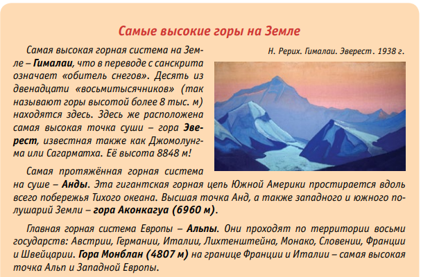 Задание 2. Красота и неприступность горных вершин всегда служили источником вдохновения для известных поэтов, писателей, художников и композиторов. Назовите известные литературные или живописные произведения, в которых изображены различные горные системы или отдельные