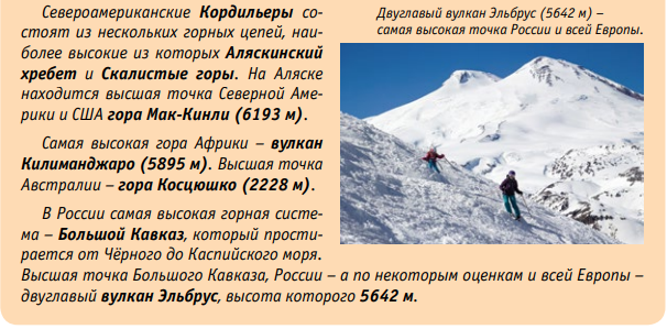 Задание 1. Отметьте на контурной карте мира высочайшие горные вершины для каждого материка. К каким горным системам они относятся? На территории каких государств расположены?