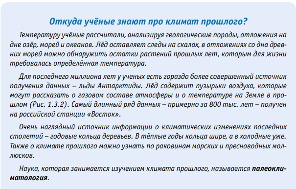 О том, что климат на Земле менялся всегда, догадаться несложно. Конечно, герои мультфильмов и компьютерных игр про динозавров и ледниковый период выдуманы, но сами динозавры существовали, об этом свидетельствуют оставшиеся после них многочисленные кости и яйца. Когда жили динозавры, было гораздо теплее, чем сейчас. Были и ледниковые периоды, когда было намного холоднее, а ледник доходил до Москвы, Берлина и Чикаго, причём его толщина была больше многоэтажного дома!